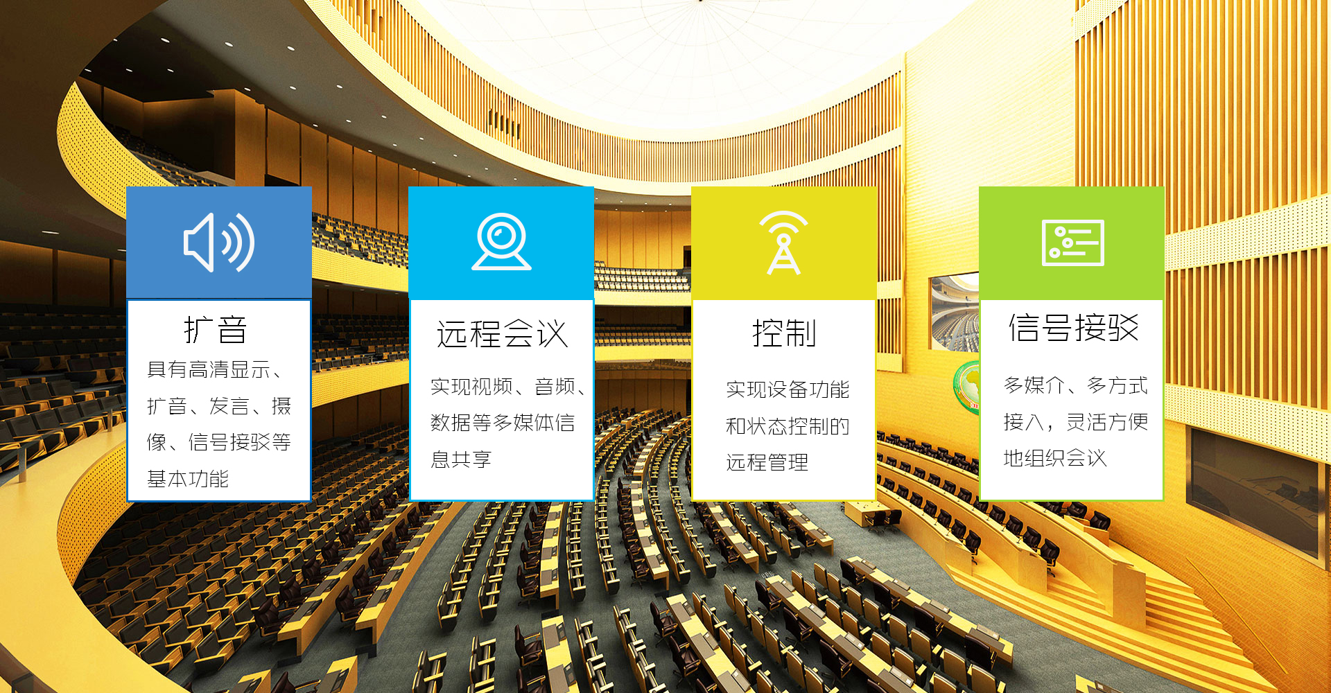 智能化會(huì)議系統(tǒng)具有高清顯示、擴(kuò)音、發(fā)言、攝像、信號(hào)接駁等基本功能,同時(shí)也應(yīng)具備智能化管理功能;實(shí)現(xiàn)視頻、音頻、數(shù)據(jù)等多媒體信息共享;實(shí)現(xiàn)設(shè)備控制和狀態(tài)的安全遠(yuǎn)程管理;具有會(huì)議預(yù)訂、變更、查詢、錄播、權(quán)限設(shè)置等會(huì)議管理功能;具有應(yīng)急響應(yīng)功能;可實(shí)現(xiàn)在會(huì)議中的無縫切換,保障會(huì)議平穩(wěn)進(jìn)行;多媒介,多方式接入,靈活方便地組織會(huì)議。