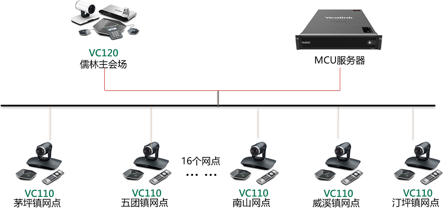 面對日益增多的會議溝通需求及業務能力的培訓需要,加強與各個網點之間的科學化,信息化管理顯得尤為重要,億聯結合自身城步農商銀行部分網點分布分散,地區偏遠,交通不夠便利的情況,以儒林作為主會場采MCU6000,及VC120終端,分會場采用VC110部署,利用現有信貸網絡,完美搭建起一套可視化,便捷化,高效化的視頻會議系統。各個網點之間的日常會議交流再也不需要從山區集中到總部來,直接通過視頻會議即可傳達省級單位的工作,業務能力的培訓;在惡劣天氣無法出行時,還可通過視頻會議系統遠程安排各個網點的工作,及時做好防護,保護措施。